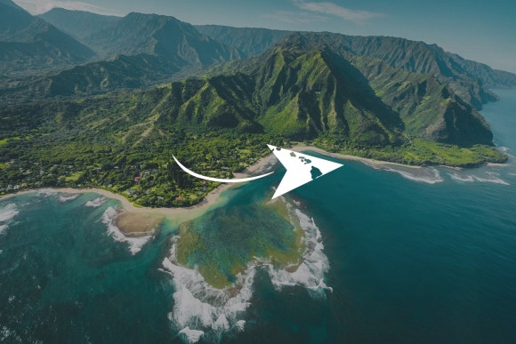 하와이로 떠나는 비행기 경로를 보여주는 비행운과 마우스 줄 형태의 느낌을 담았습니다.
