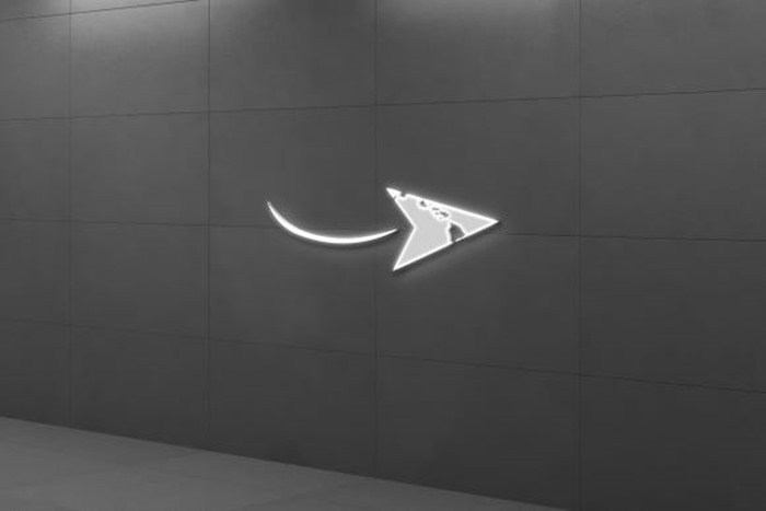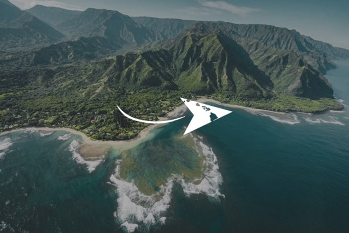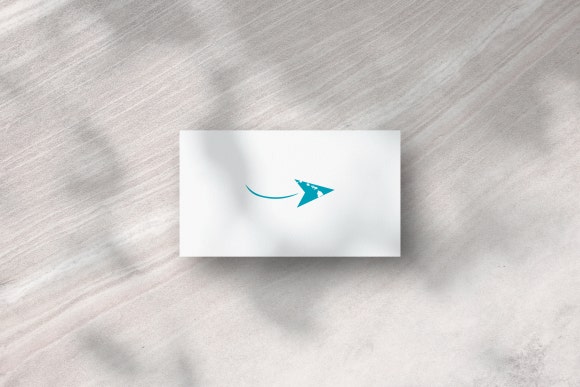 이중적인 의미인 비행기와 마우스 커서를 상징하는 삼각형태의 요소.